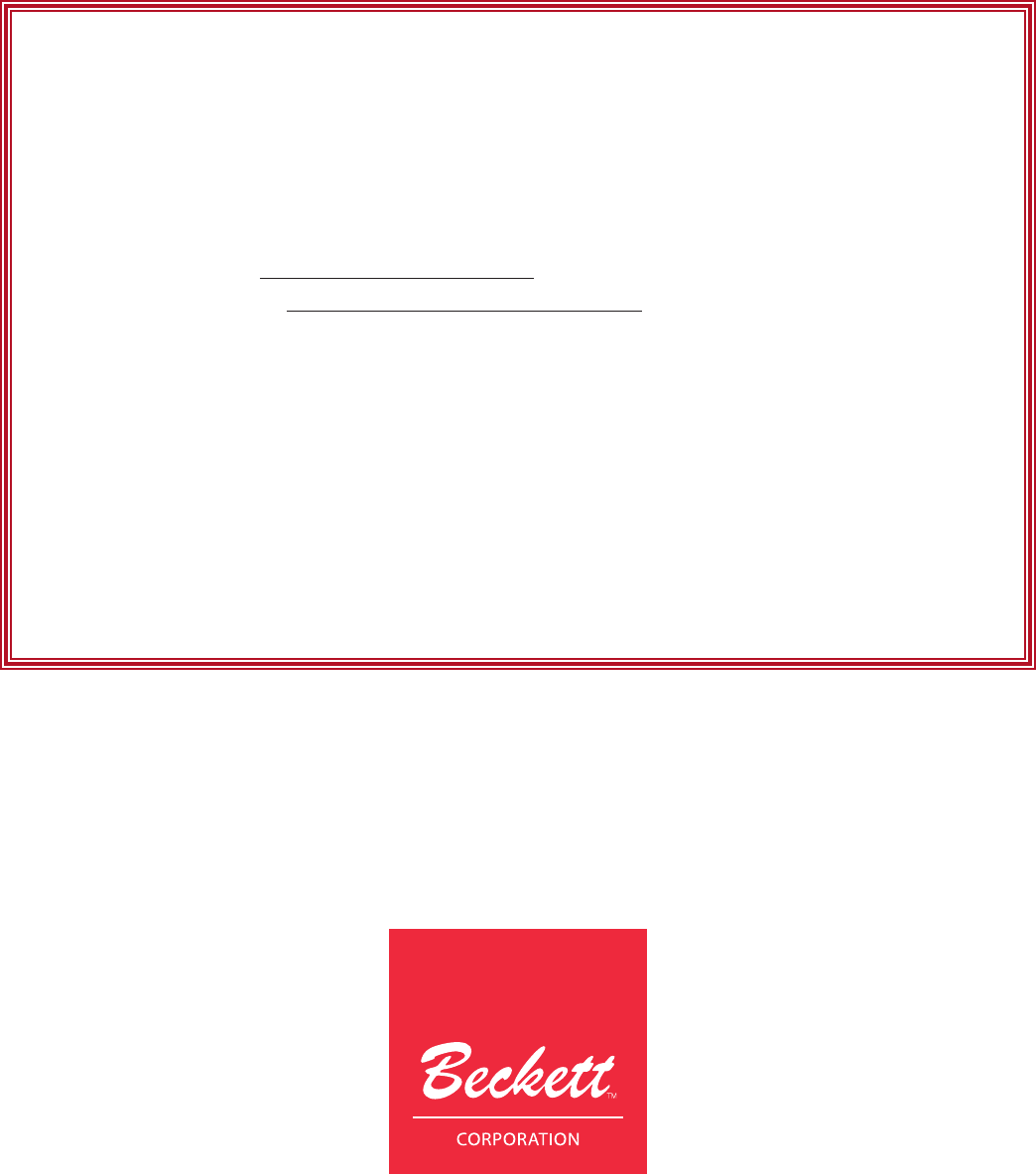 NOTE: Beckett is not responsible for any labor cost for removal and replacement of equipment.